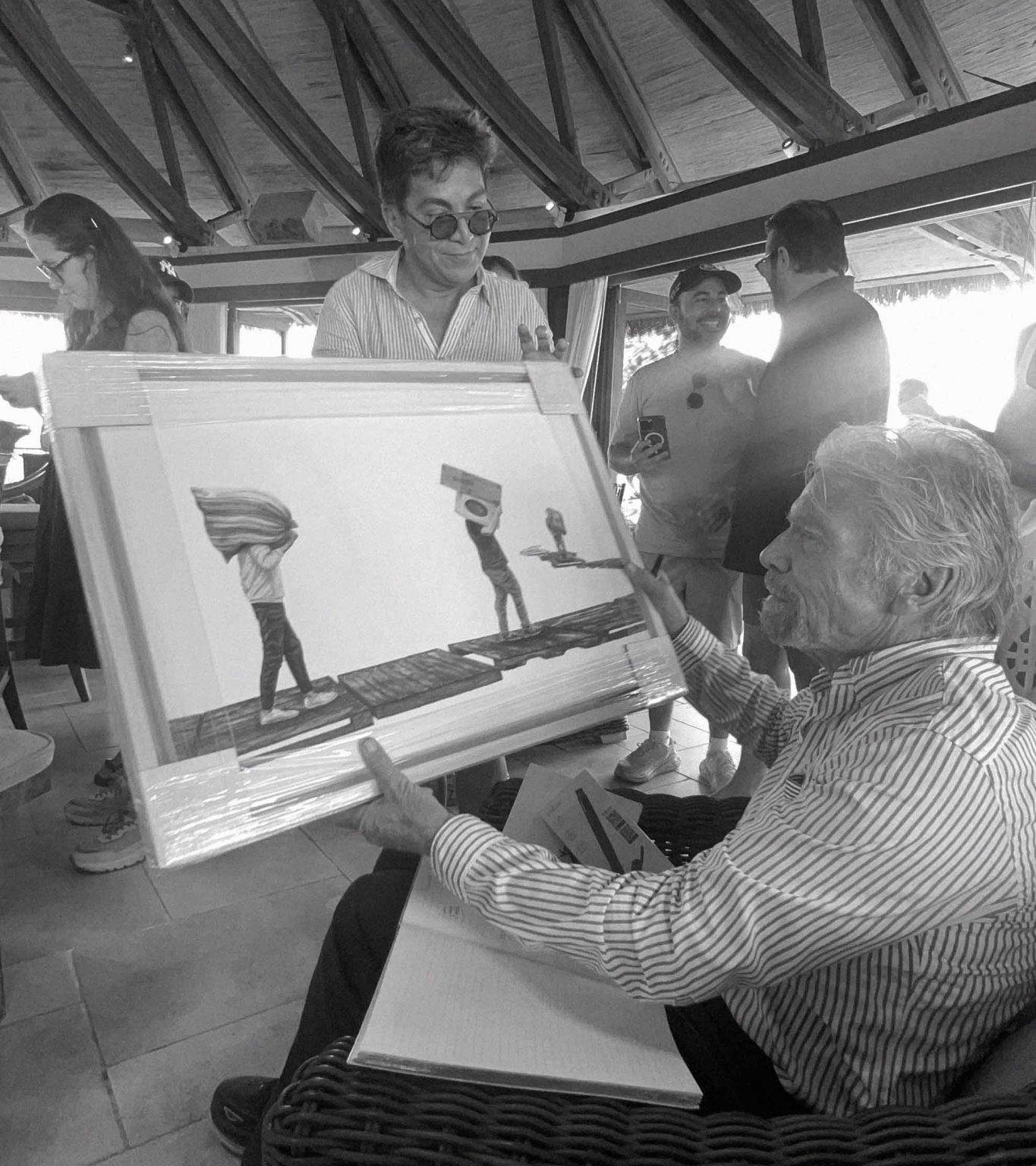 During his stay, Eduardo presented Sir Richard Branson with an original oil painting by Didier Bedoya, one of The Art Dome’s founding artists.