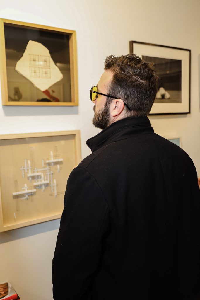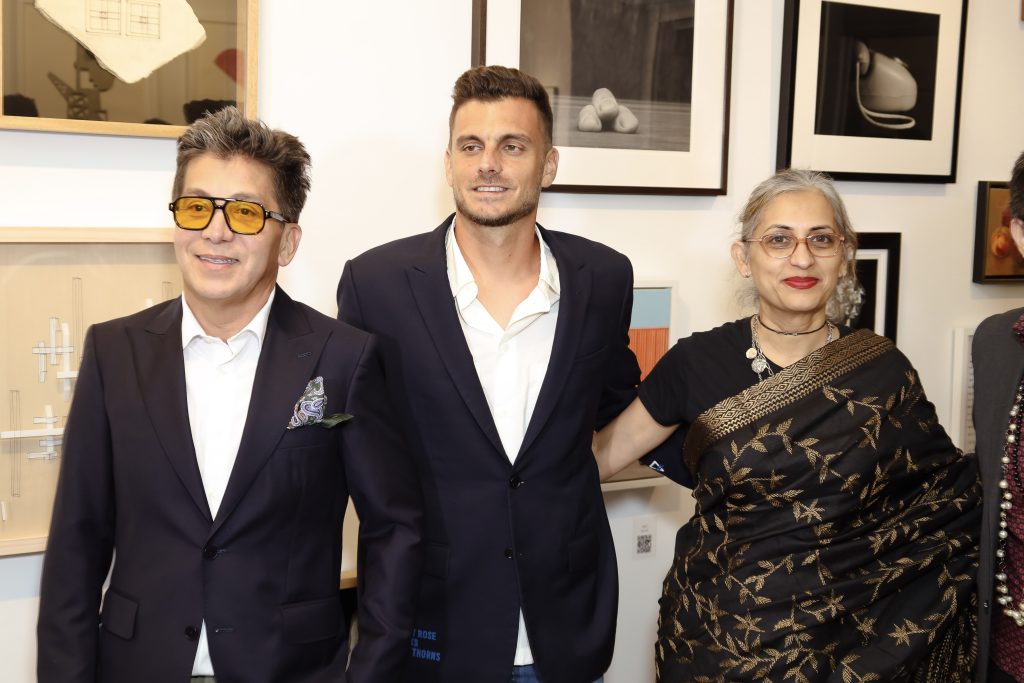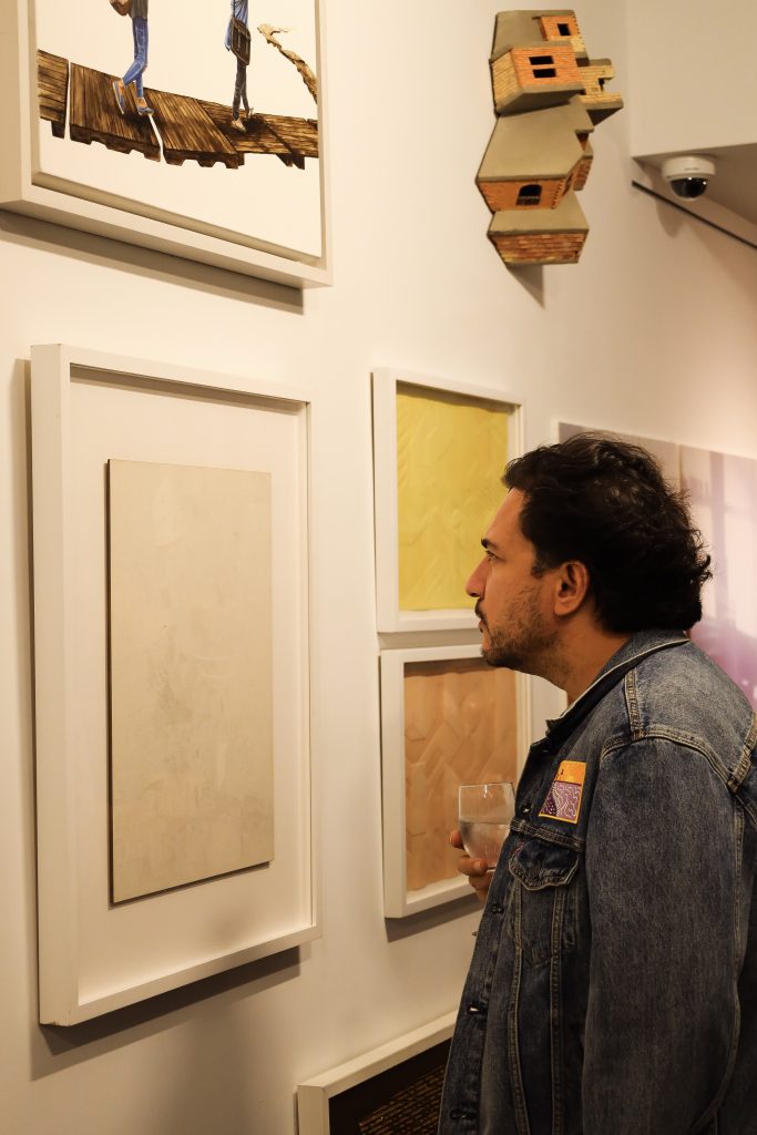 But Thibo wasn’t alone. Representing The Art Dome’s artist family, Bipasha Hayat flew in from New York for her first Art Dome Pop Up, where she exhibited her work and shared her experiences as our most recent Art Dome artist. Her series Memoirs — eight pieces exploring her fascination with the ancient world, its lingering legacy, and the dialogue between classical urn figures and abstract fragments of debris in contemporary materials such as cardboard — anchored a powerful conversation about time, memory and materiality.